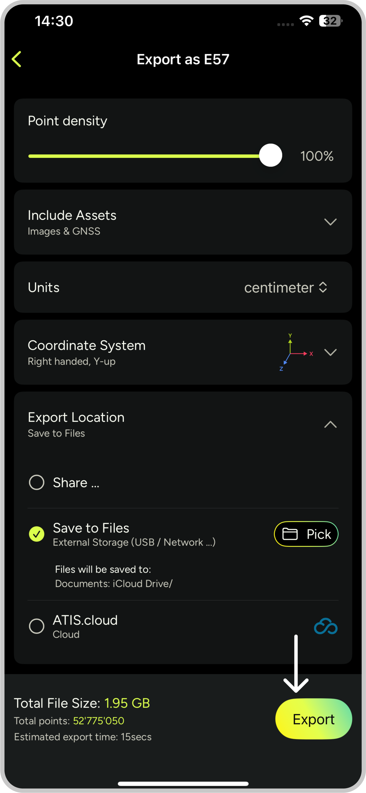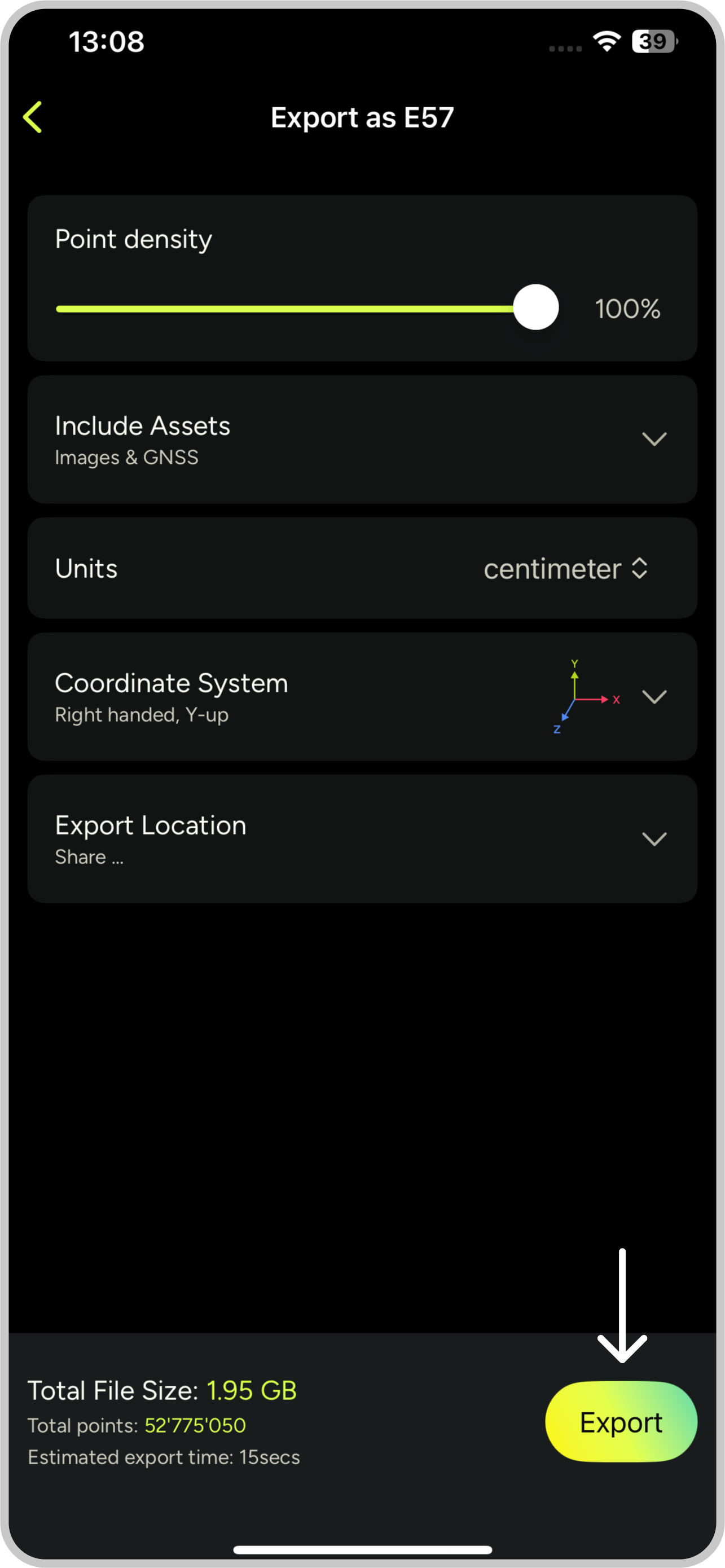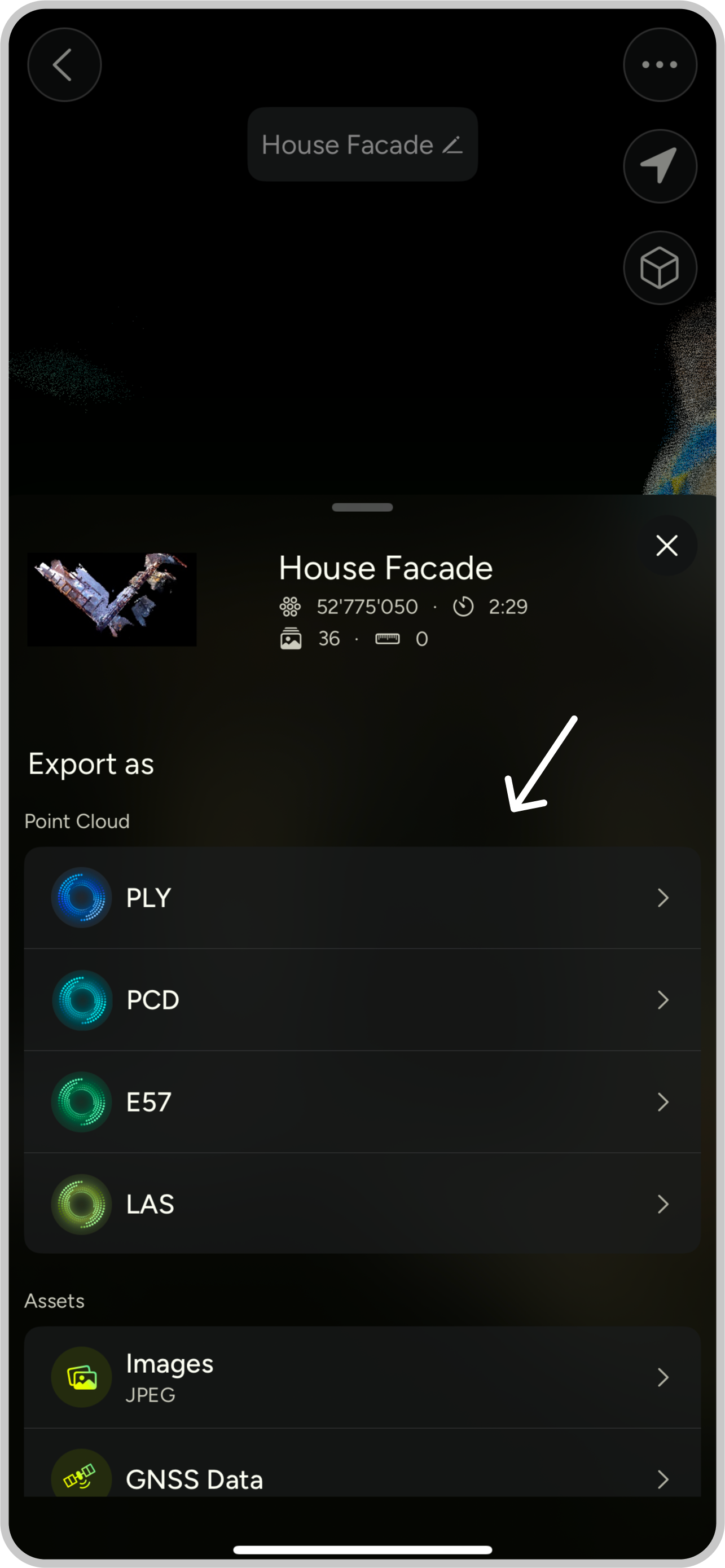 - Select a 3D scan in MAVO 3D’s browser & tap the export/share button