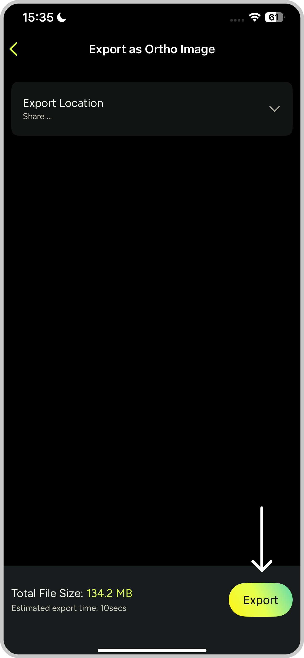 - Tap “Ortho Images”, choose export location and hit “Export”